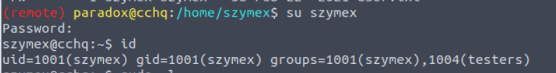 (remote) paradox@cchq:/home$ ls -al szymex/